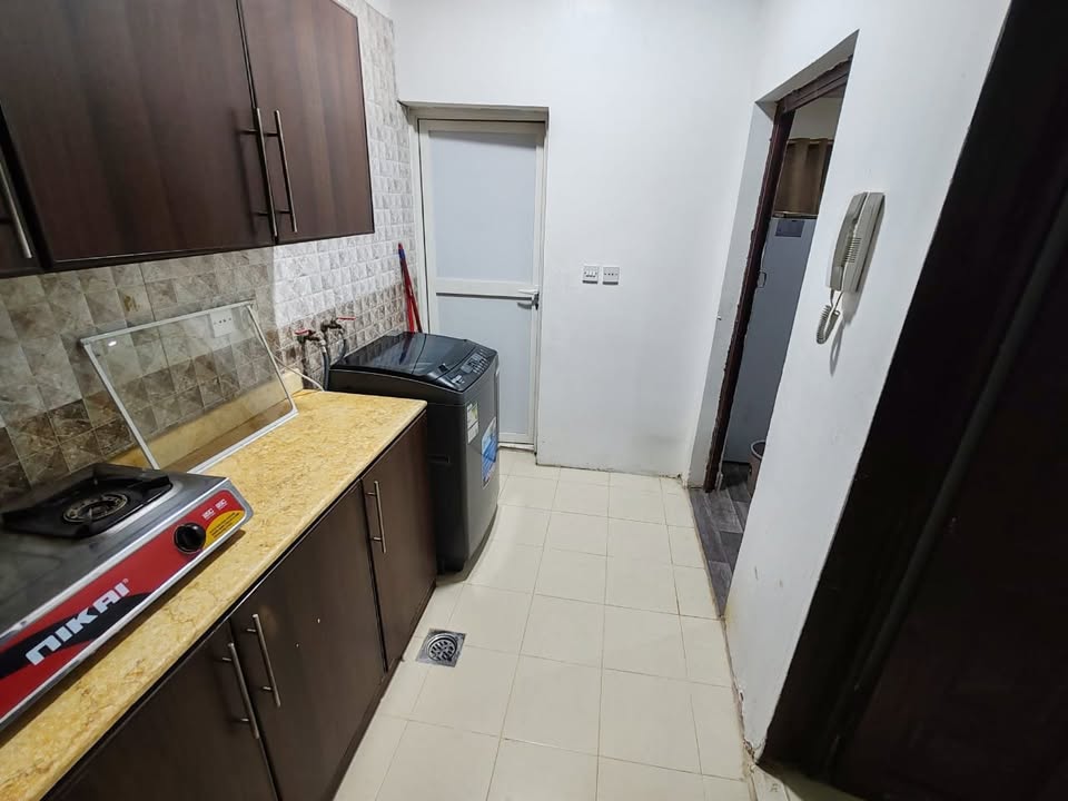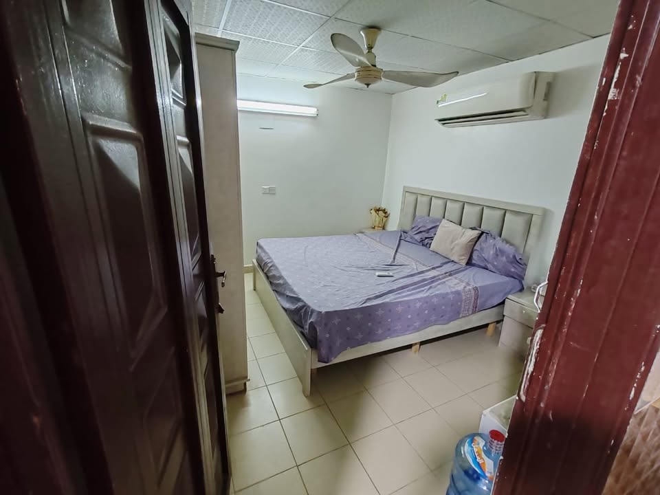 Fully furnished with bed sets in rooms, cabinets in kitchen, tiles floor and a neat bathroom. Electricity